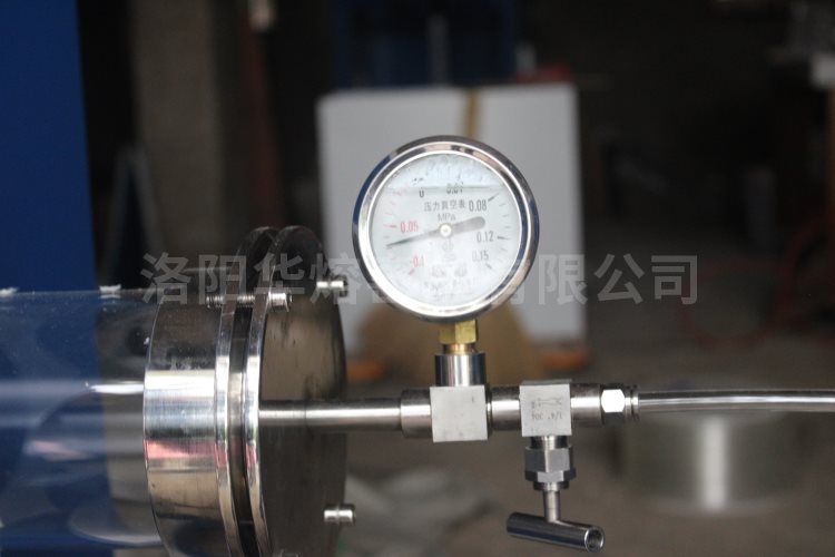 密封係統采用不鏽鋼法蘭與爐管及耐高溫O型矽橡膠密封,氣體經過流量計後由針閥開關控製,閥控配有進氣閥、排氣閥、抽真空閥,可充氮氣、氬氣等惰性氣體。